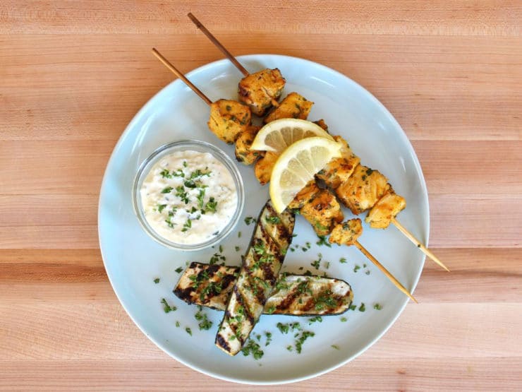 Tori Avey’s recipe for halibut skewers, dressed in a mildly-spiced mix inspired by the flavors of Sephardic cuisine, needs about a half hour to marinate. They’ll take about 10 minutes to grill up. Serve with a fresh squeeze of lemon or a side of tzatziki.